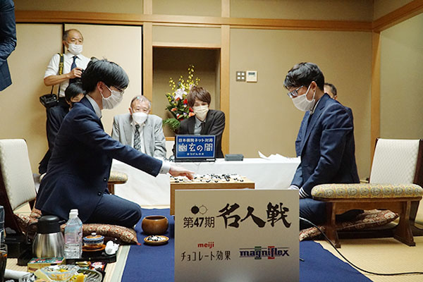 第47期名人戦七番勝負の第5局です。挑戦者の芝野さんが3勝1敗でカド番に追い込み、この碁も序盤で井山さんが失敗して形勢を損ねたものの、粘り強く食らいついています。
