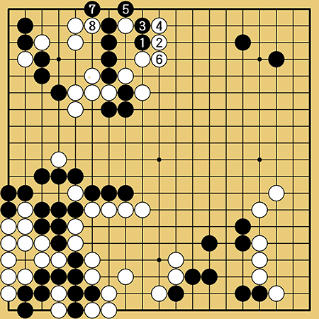 1図の黒1で1から5までを先に決めるのは白6と守られてしまいます。後から黒7とコスんでも白8で黒は生きられません。