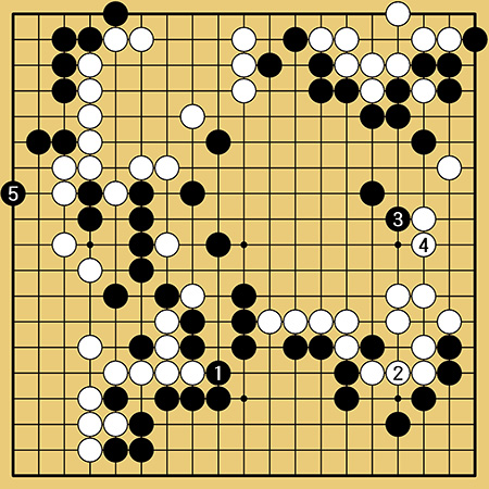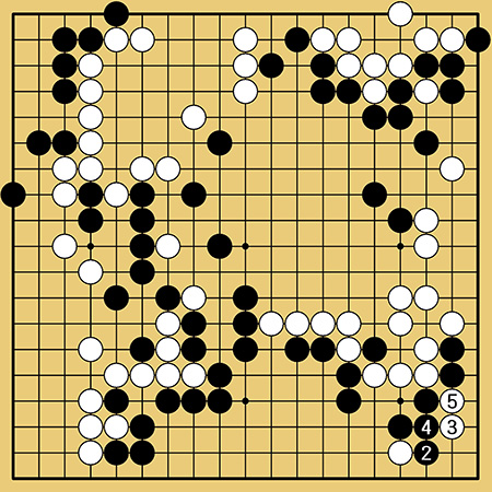 実戦は黒は2と打ちましたが、白3に黒4と打つしかなく、白5まで二子を取っては白が得をしました。