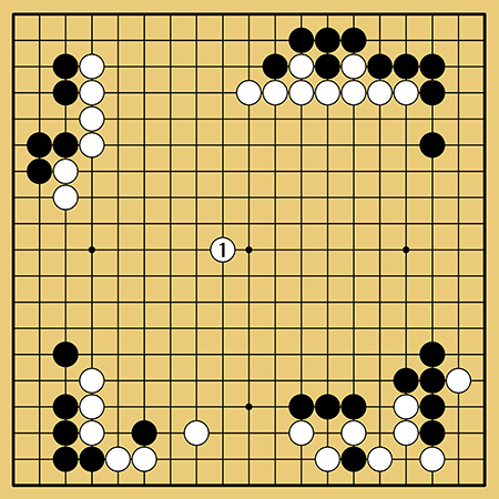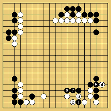 9年ぶりに名人戦に挑戦し、激闘となり3勝3敗で迎えたシリーズ最終局。ここまで黒が実利、白が厚みを取る展開です。
