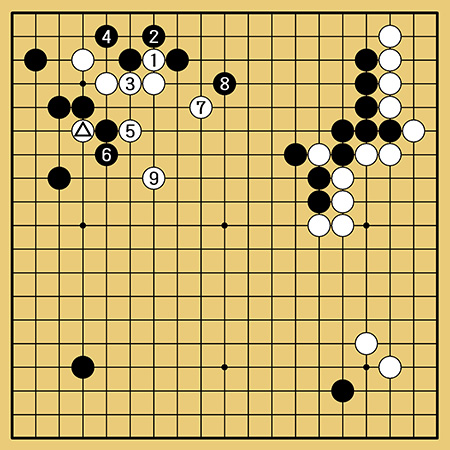 白1~9のサバキなら分かりやすいですが、△一子を犠牲にしてこの程度のサバキでは白はやや不満です。