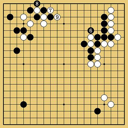 4図も5図も不満と見て許先生は黒1と抜きました。白も2と抜き、黒3まで上辺は一段落しましたが、白は先手で上辺を安定することができて楽しい展開になったのではないでしょうか。井山先生の大胆な構想と決断力、大変勉強になりました。