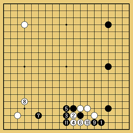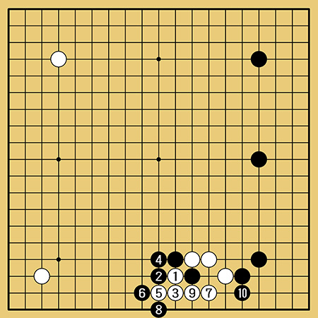 近年では黒1とケイマすることが多いです。歴代の棋士たちの研鑽と工夫の積み重ねが現代の碁の礎となっているのです。