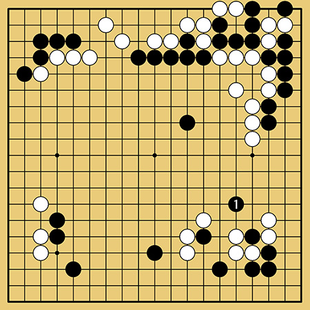私は白石が多いところに黒1と打ちました。様子見の意味が強く、相手の出方によって方針を決めようという一手です。