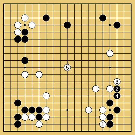 白5と下辺の模様を拡げた局面です。当時私は記録係として現地にいたのですが、次の手が打たれた瞬間控室がどよめきました。
