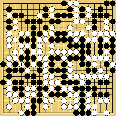 このまま進めば黒が盤面でも13目ほど残りそうな局面。