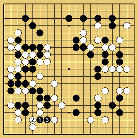 左下の黒に対して白が攻めているところですが、黒1のツケから3のブツカリが妙手で黒の一団をうまくシノギました。素晴らしい手筋がみられると感動しますね。