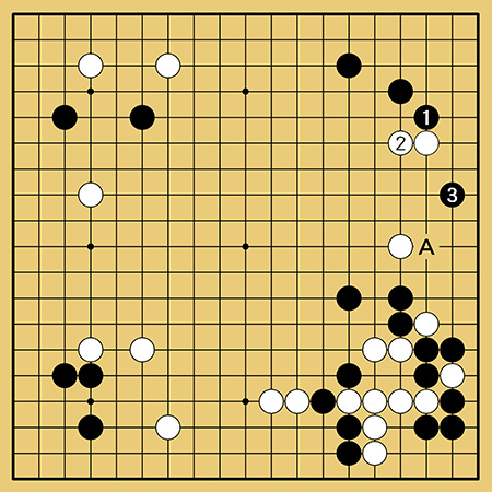 黒1、3が感動の一手。黒1のコスミツケ、白2のノビの交換は一見白石を強くしているようにも見えますが、黒3が好手。根こそぎ攻めようという厳しい一着です。