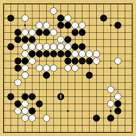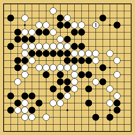 2図から20手ほど進んだ局面です。攻めながら左辺や下辺の白を好形にしつつ先手で白1にまわり、白が楽しみな形勢になりました。
