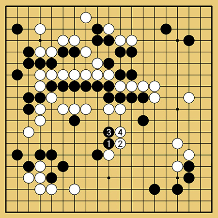 左辺の黒石も強い石ではないので黒1、3と応じてきましたが、白4まで自然に中央に白石を持ってくることができました。