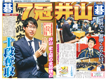 )5月20日号(5/9(月)発売)に井山裕太七冠達成のグラビア記事が掲載されています。