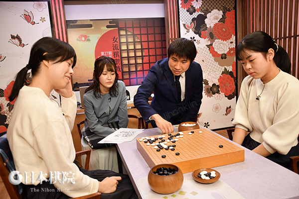 局後の感想戦での様子。本局の解説は蘇耀国九段、聞き手は木部夏生三段