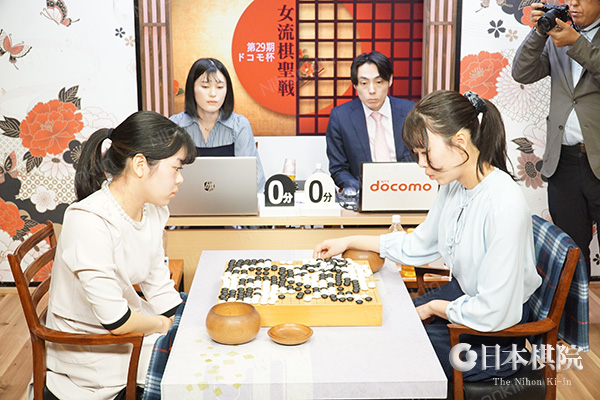 対局直後の全景。タイトル戦の舞台で、約40年ぶりの姉妹対決が実現