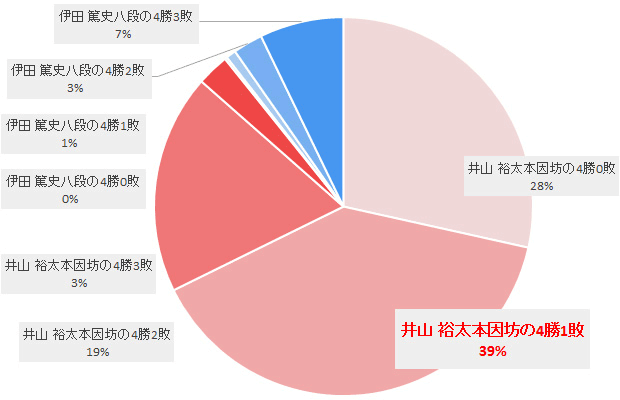 応募総数479名様中、井山裕太本因坊の4勝1敗と予想したのは184名様でした。