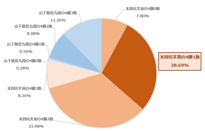 応募総数359名様中、本因坊文裕(井山裕太)の4勝1敗と予想したのは103名様でした。