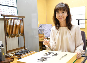 吉原由香里六段の揮毫風景