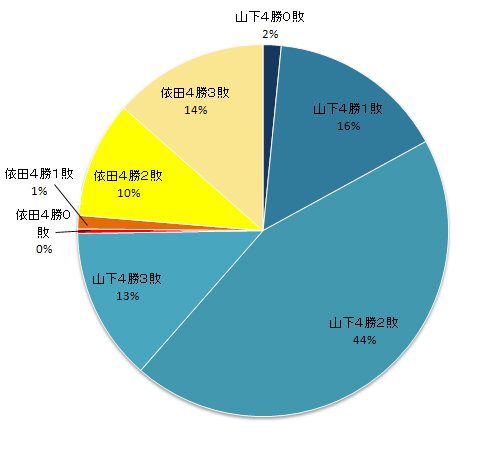 これまでの対戦成績 山下敬吾棋聖11勝 ― 依田紀基九段10勝
