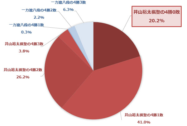 応募総数317名様中、井山棋聖の4勝0敗と予想したのは64名様でした。