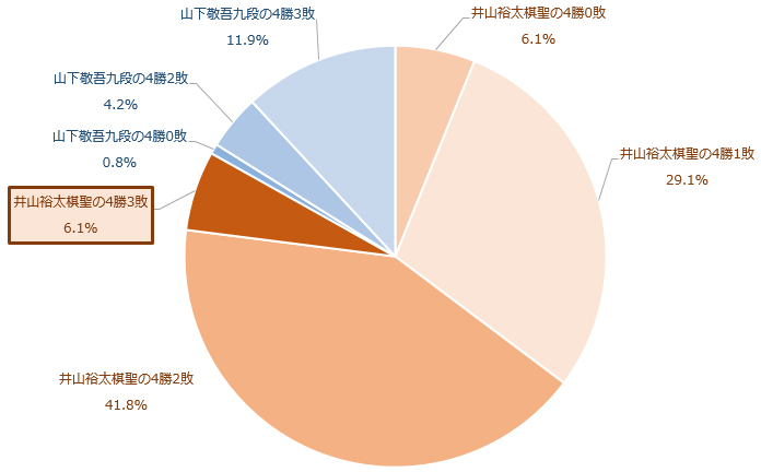 応募総数261名様中、井山棋聖の4勝3敗と予想したのは16名様でした。