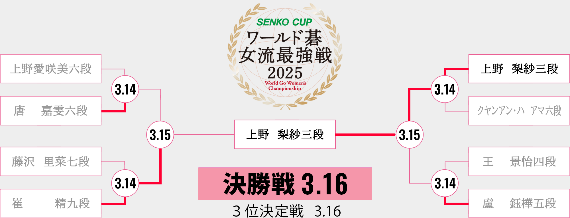 対戦表、世界女流アマ囲碁最強戦トーナメント表更新しました。