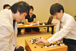 ![]() ![]() (挑戦者決定戦。2011年8月25日) 昨年8月、坂井秀至七段=当時=が碁聖位を奪取し、関西棋院に29年ぶりの7大タイトルをもたらした。すると、その坂井の活躍に刺激された結城聡九段=同=(本人もそう語っている)が11月に天元位を奪取して続いたのである。発足以来、常に日本棋院勢(東京本院、中部総本部、関西総本部)の後塵(こうじん)を拝し続けてきた関西棋院がついに宿願を達成―。昨年の囲碁界における最大のトピックであった。 しかし、今年の6月から8月にかけて行われた碁聖戦で、坂井が羽根直樹九段=当時=に2勝3敗で敗れ、防衛に失敗した。関西棋院が保有するタイトルは結城の天元位のみとなったわけで、これが冒頭で触れた「浮沈を賭けた〜」の絵解きである。 一方、挑戦者の井山裕太名人・十段の側から見ると「碁界制覇への足固めなるか」が大きな注目点となる。 20歳という史上最年少記録の若さで名人位に就き、今年の4月には十段位も奪取して二冠。8月には世界選手権・富士通杯で世界の強豪を連破して3位入賞。今や押しも押されもせぬ「日本のエース」へと成長した。 井山にとって今回の5番勝負は、名実ともに第一人者の道を歩み始められるかどうかの、重要な戦いとなる。現在、山下道吾本因坊を挑戦者に迎えた名人防衛戦の真っ最中であるが「名人防衛、天元奪取で三冠」が青写真であることは間違いない。 そして5番勝負の展望であるが、穏やかに地を囲い合う展開はまず考えられず、激しく火花の散る乱戦が全局で繰り広げられることだろう。 より具体的にポイントを絞れば、硬軟自在の井山に対し、結城の一撃必殺を秘めたハードパンチが決まるかどうか―。この一点に尽きると言っていいのではないか。 「碁は格闘技」との言葉を再認識する、そんな5番勝負となる予感がする。