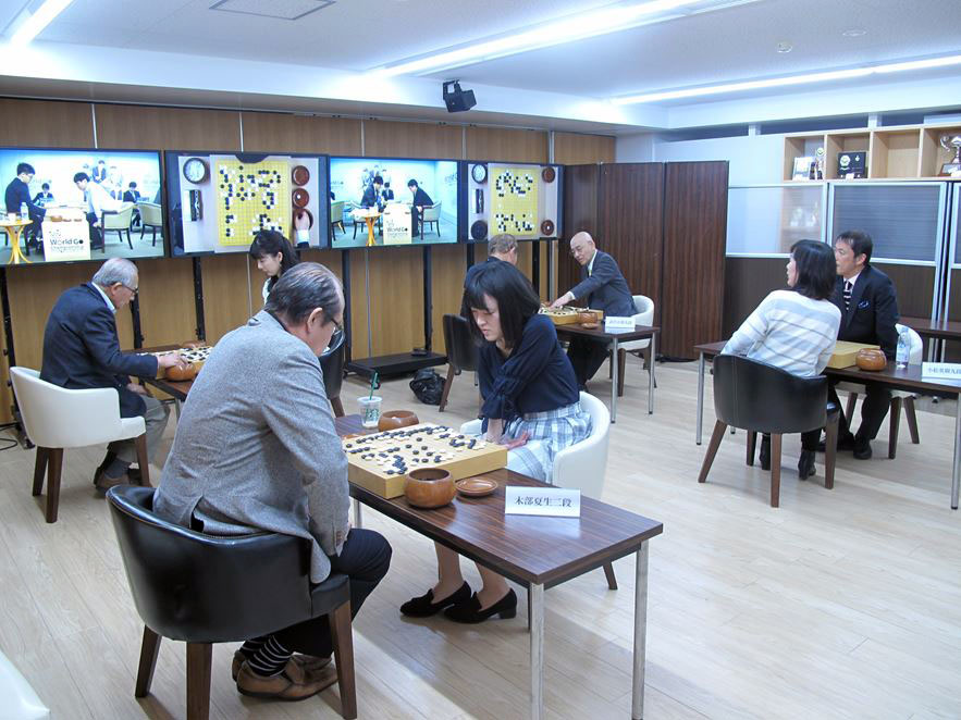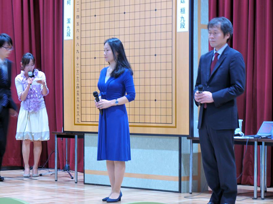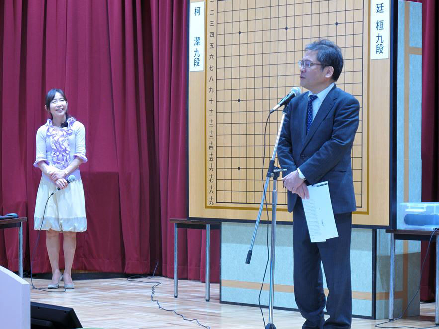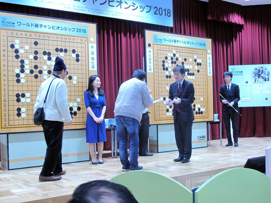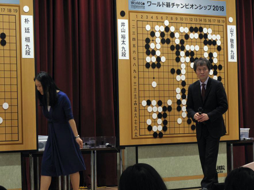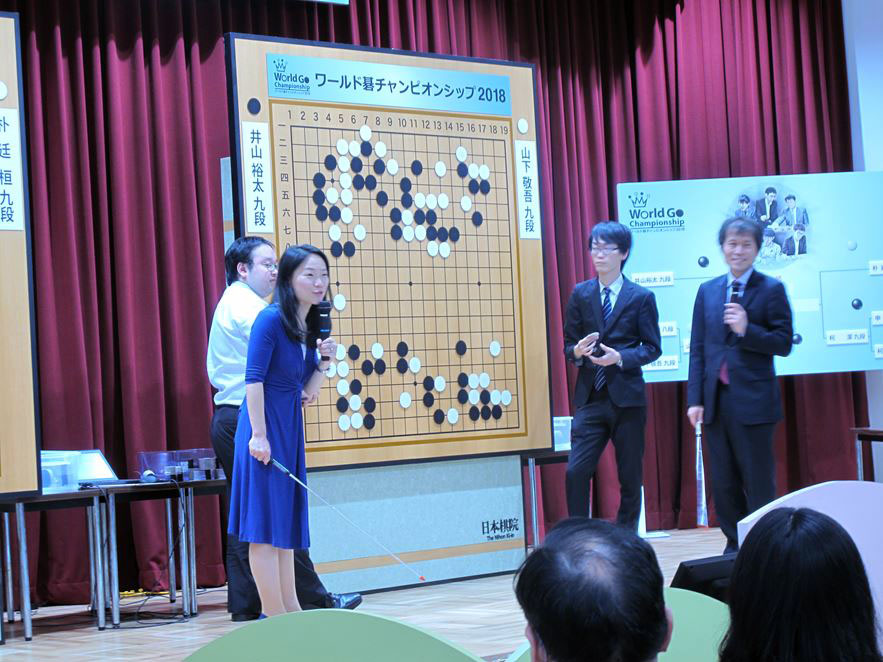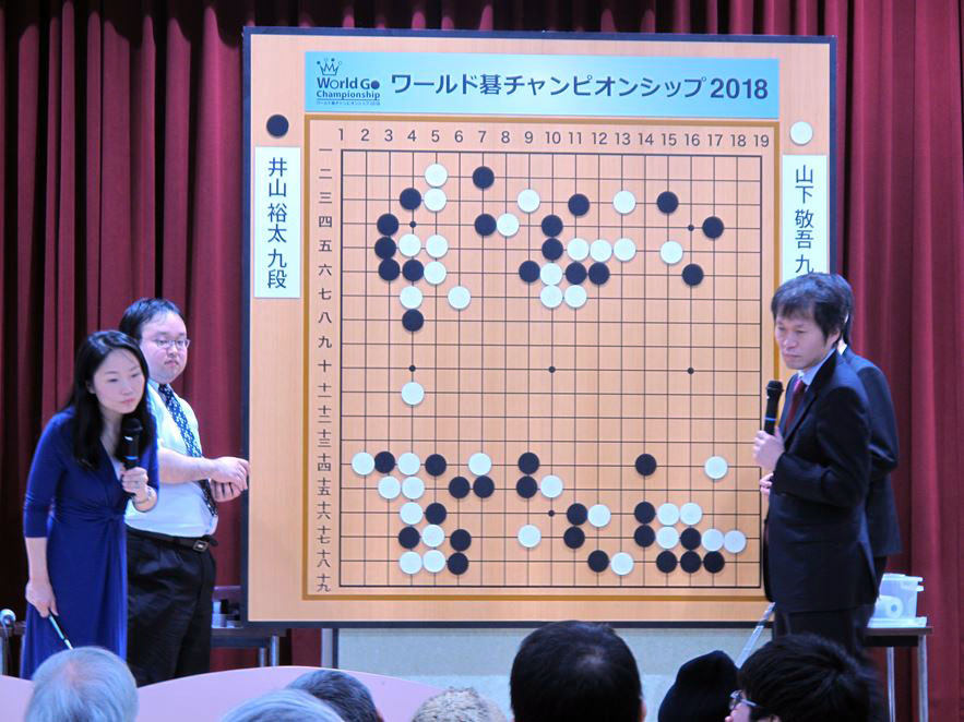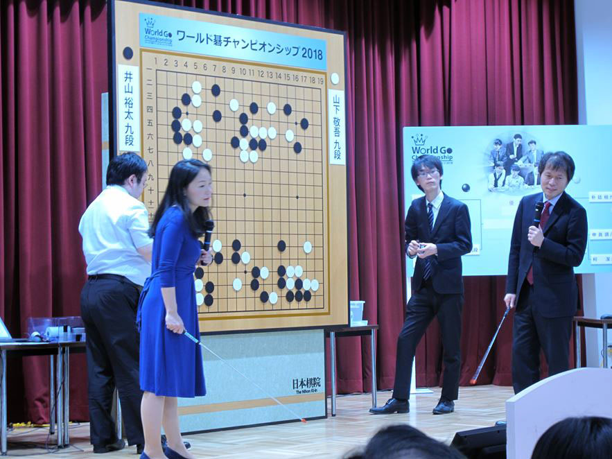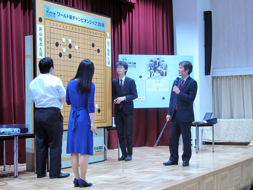 大会一覧へ 大会概要 出場棋士 ニュース&トピックス 対戦表・スケジュール 大盤解説会 ライブ中継・特設ページ AI ニュース&トピックス WGC2018 2日目大盤解説会の模様が届きました 2018.03.18 大盤解説開始前の様子 日本棋院 山城宏副理事長の挨拶 2日目の解説者、聞き手の紹介 聞き手(左から2番目):大澤奈留美四段 解説者(右):高尾紳路九段 井山九段(日本代表)vs山下九段(日本代表)の対局を解説 会場内の観覧者とAIの形勢判断を見守る 「次の一手クイズ」を出題する高尾九段 見事、当たった観覧者に記念扇子のプレゼントが渡される 検討室の様子(左奥:山城九段、左手前:円田秀樹九段、右:王銘鋺九段) 別室では日本棋院所属棋士による指導碁も行われていた 2日目の大盤解説会も大盛り上がりを見せた! 一覧へ戻る