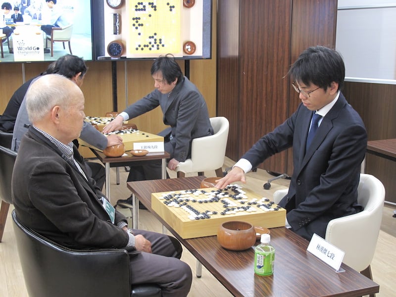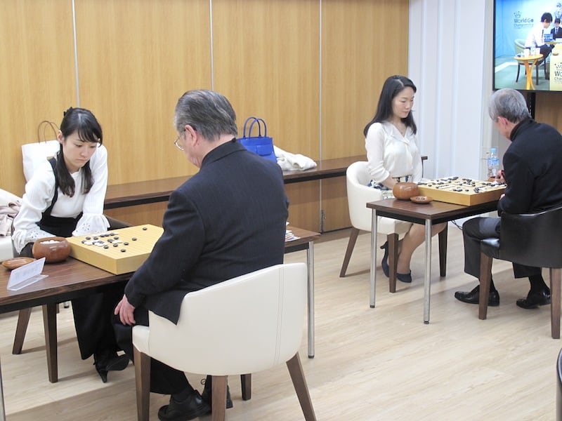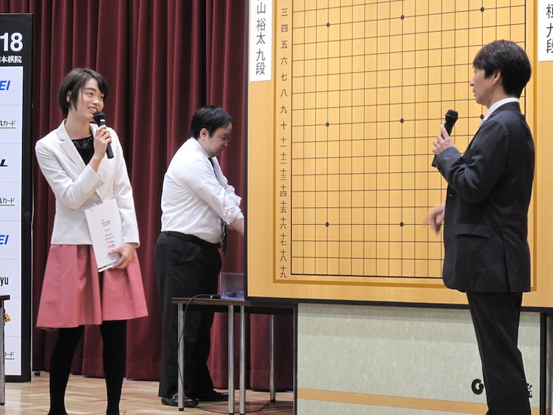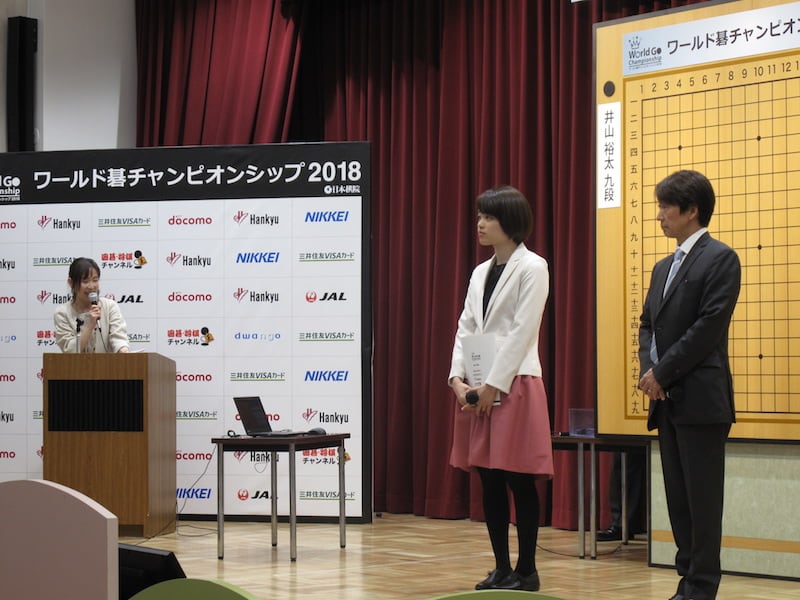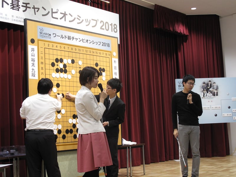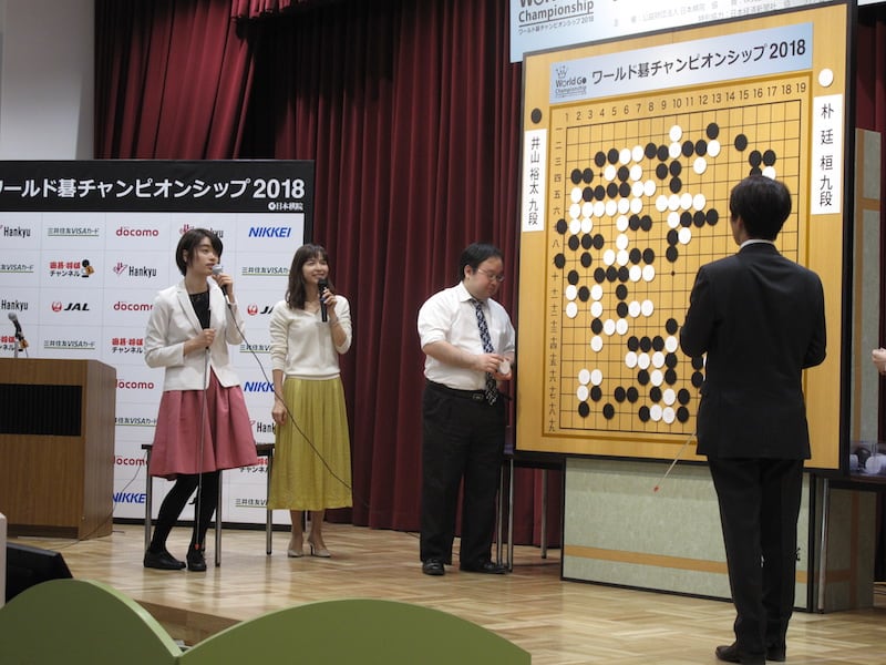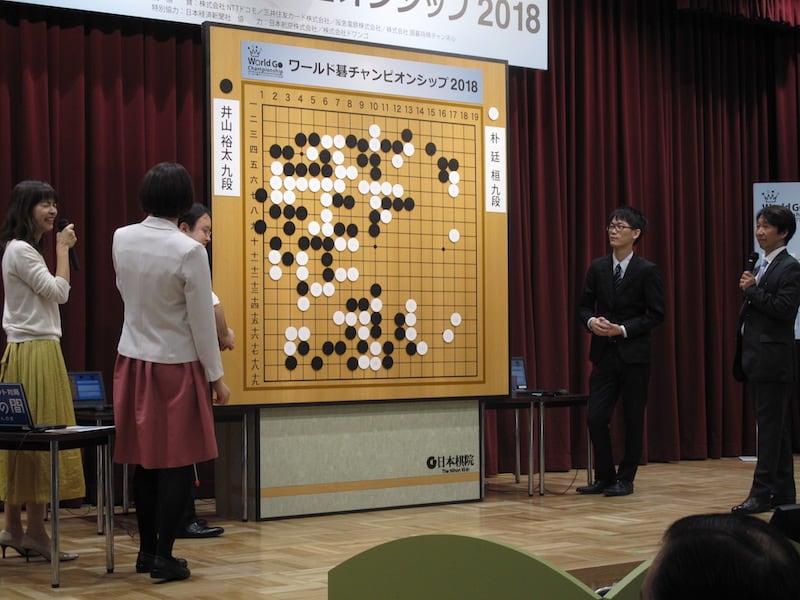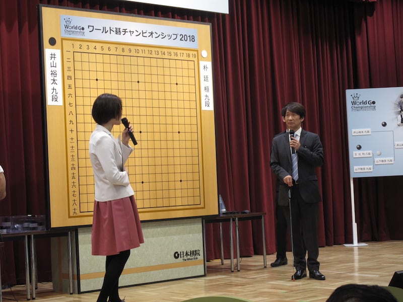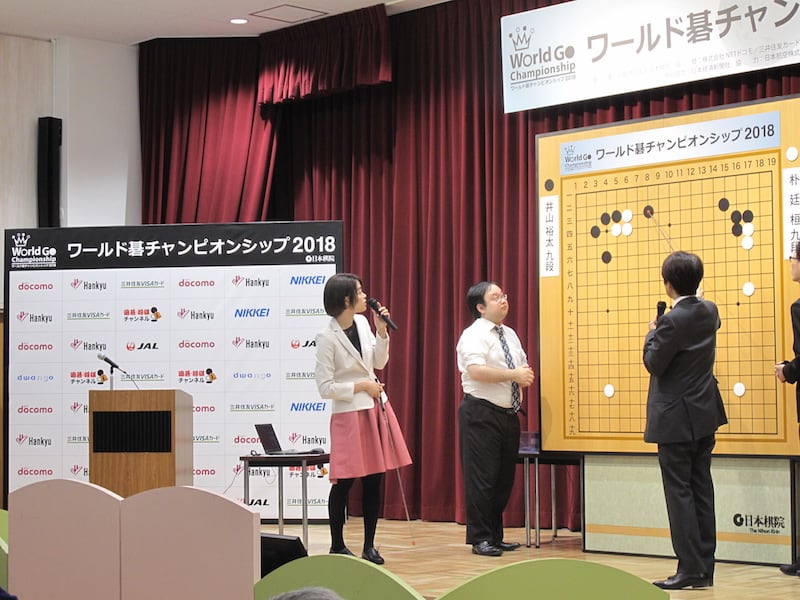 大会一覧へ 大会概要 出場棋士 ニュース&トピックス 対戦表・スケジュール 大盤解説会 ライブ中継・特設ページ AI ニュース&トピックス WGC2018 3日目大盤解説会の模様が届きました 2018.03.19 大盤解説開始前の様子 司会を務める大野亜紀さん 日本棋院 山城宏副理事長の挨拶 3日目の解説者、聞き手の紹介 聞き手(左):星合志保二段 解説者(右):小林覚九段 AIについて語る小林九段(右)と星合二段(左) DeepZenGo(日本のAI)に形勢判断を読み込ませる伊藤優詩四段(左) こちらが天壌(中国のAI) こちらがCGI(中華台北のAI) 決勝戦の大一番は解説にも熱が入る 星合二段もAIの形勢判断には興味深々 別室では万波奈穂三段(左)大澤奈留美四段(右)による指導碁も行われていた こちらは王銘鋺九段(右奥)林漢傑七段による指導碁 別室で検討していた村川大介八段も飛び入りで参加 聞き手の星合二段と目が合った吉原由香里六段もステージへ 吉原六段と星合二段によるダブル聞き手 小林九段、吉原六段、星合二段による解説会は盛り上がりを見せた 一覧へ戻る