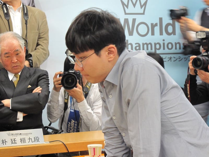 大会一覧へ 大会概要 出場棋士 ニュース&トピックス 対戦表・スケジュール 大盤解説会 ライブ中継・特設ページ AI ニュース&トピックス WGC2018 決勝戦終了の模様が届きました 2018.03.19 熱戦の末、中盤でリードした朴九段がそのまま逃げ切った 序盤を振り返り検討する朴九段(韓国代表) 惜しくも国際棋戦優勝を逃した井山九段(日本代表) 立会人の大竹名誉碁聖も検討に加わりながら進めていく 悔しそうな表情を浮かべる井山九段(日本代表) 朴九段(韓国代表)も安堵の表情を浮かべる 対局が終了し大盤解説会場に足を運ぶ両対局者 下辺での衝突を検討する井山九段(日本代表) 感想を述べる朴九段(韓国代表) 朴九段(韓国代表)の読みに真剣な表情の小林九段(解説者) 朴九段(韓国代表)に「日本囲碁界」について質問する小林九段(解説者) 一覧へ戻る