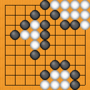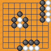 白石の呼吸点を無くすために、周りを黒石で囲いました。