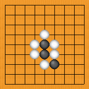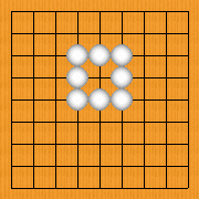 真ん中に黒石を打てば、白石は全部取れてしまうので、