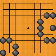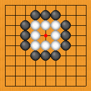 この状態では、真ん中に黒石を打つ事はできません。