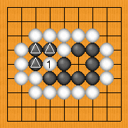 黒1で黒△の三子を助けたとしても黒全体を見れば、一眼しかなく黒死にです。