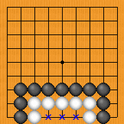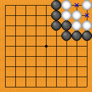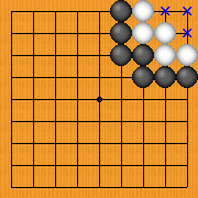 石を打てる所、打てない所についての説明は、レッスン「石を打てない所」を見てください。