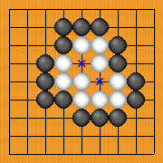 第17問 白石で囲まれている中に黒石1個を打つことができますか?