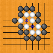 第20問 白石で囲まれている中に黒石1個を打つことができますか?