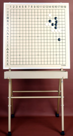 この大盤は入門用9路だけでなく、19路も市販されているので初級・中級・上級を問わず利用したいものです。