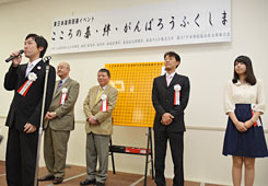 福島原子力発電所事故による放射線避難区域も一部では解除されつつあるが、まだ多くの人が避難を強いられている。こういうなかで、今年のイベントは、昨年度と同様に福島市の「パルセ飯坂」で開催した。 |