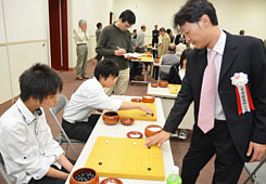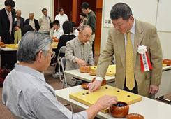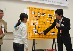 多面打ち指導碁には、地元の福島県立橘高校(元福島女子高)の囲碁部員なども含め、72名が参加した。また、地元出身の宮崎六段による初級者教室を午前中に開催し、小学生や高校生、主婦など約30名が参加した。総参加者は、交流会も含め、延べ190名。 |