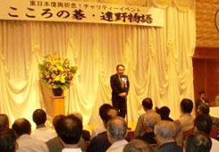 岩手県は、東日本大震災で死者・行方不明者合わせて6千人以上と、宮城県についで大きな被害を受けた。初日の全体イベントは被災地支援の後方支援活動のセンターとなっている遠野市で開催し、二日目は、被災を受けた中心地を訪問した。なお、遠野市はこのイベントの後援を前向きに受け入れてくれ、車の手配や市長の挨拶等、積極的に協力して頂いた。 |