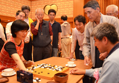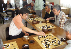 24日は、プロ棋士9名が分かれて、津波で大きな被害を受けた陸前高田市、釜石市、陸中山田町、大船渡市の日本棋院の支部を慰問激励訪問した。支部の建物はみな破壊されて使えなくなっているなかで、仮設住宅集会所や間借りの施設などでの指導碁であったが、多くの人に参加して頂いた。囲碁を打つ場所がなくなったので、震災以来はじめて碁を打ったという方もおられ、大変喜んで頂いた。 |
